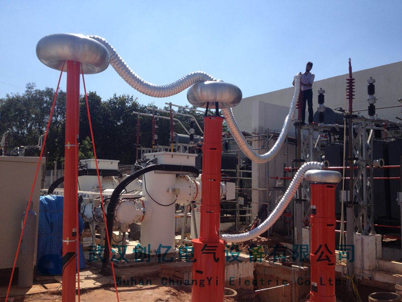 隨后,應客戶之邀,與客戶一同將CYTF-400/400串聯諧振測試系統挪到了該設備的實際使用現場,更換不同的被試品,對該套設備進行了空載試驗和負載試驗。在試驗過程中,技術工程師全程為客戶講解了該系統的操作原理,深得客戶贊嘆。